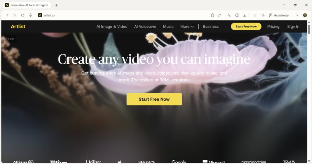 Plataforma online para criação de vídeo que oferece um vasto catálogo de músicas, efeitos sonoros, imagens e vídeos isentos de direitos autorais.