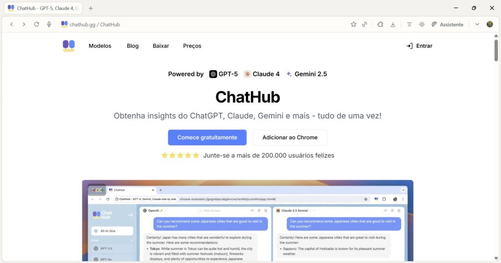 Extensão para o Chrome para conversar com diferentes modelos de inteligência artificial ao mesmo tempo e comparar respostas.