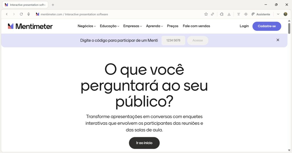 Ferramenta de design com inteligência artificial para a criação de apresentações e enquetes interativas para reuniões e salas de aula.