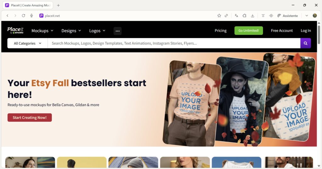Plataforma para criar mockups (maquetes), protótipos, designs gráficos, vídeos e materiais com base em templates e modelos de produtos.