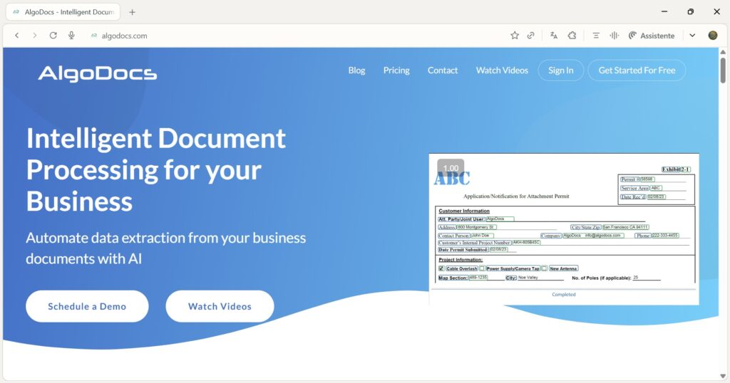 Plataforma de IA para extração e processamento de dados de formulários, faturas, imagens, contratos, documentos preenchidos à mão, entre outros.